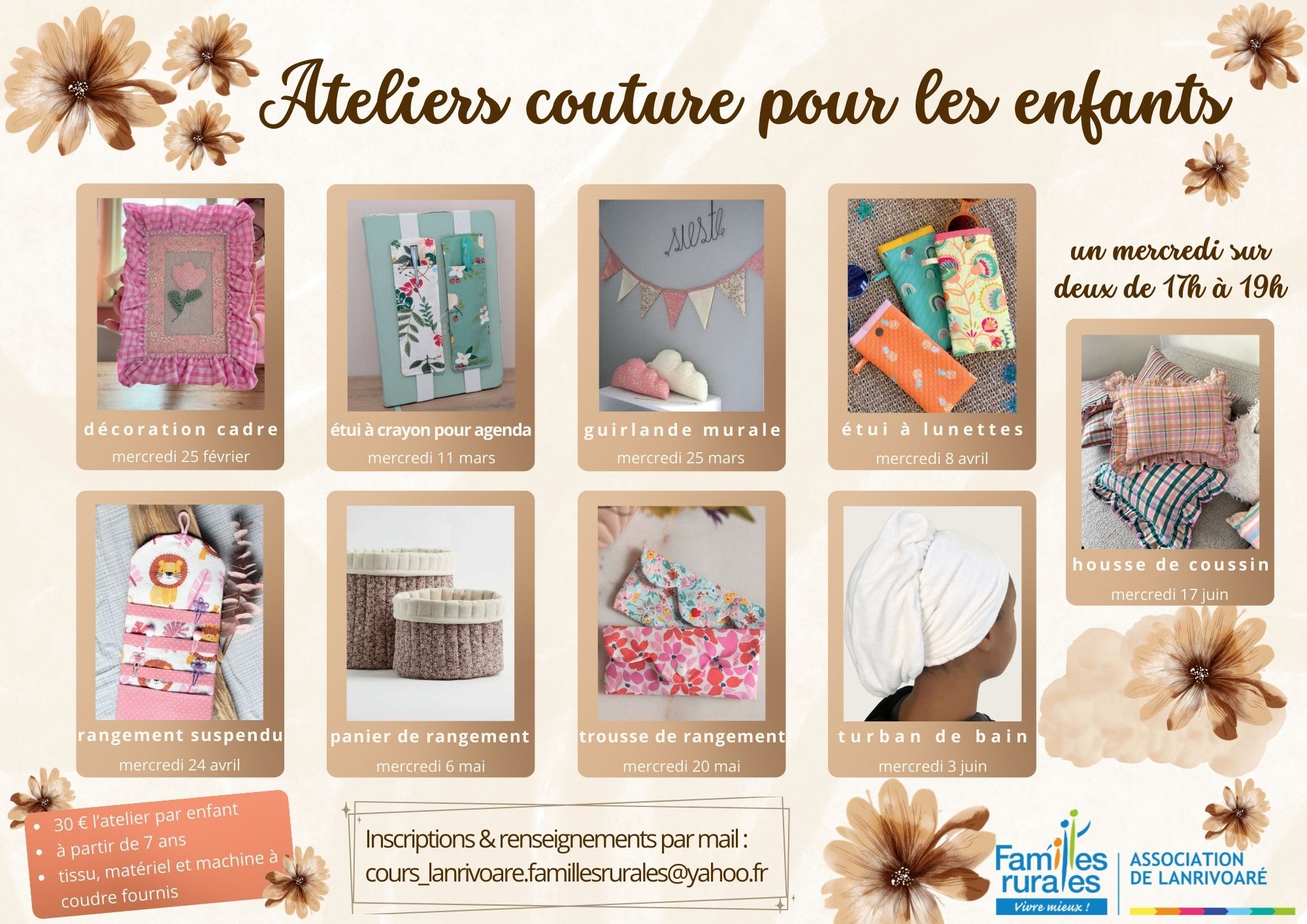 Inscriptions et renseignements par mail / règlement à la réservation.
