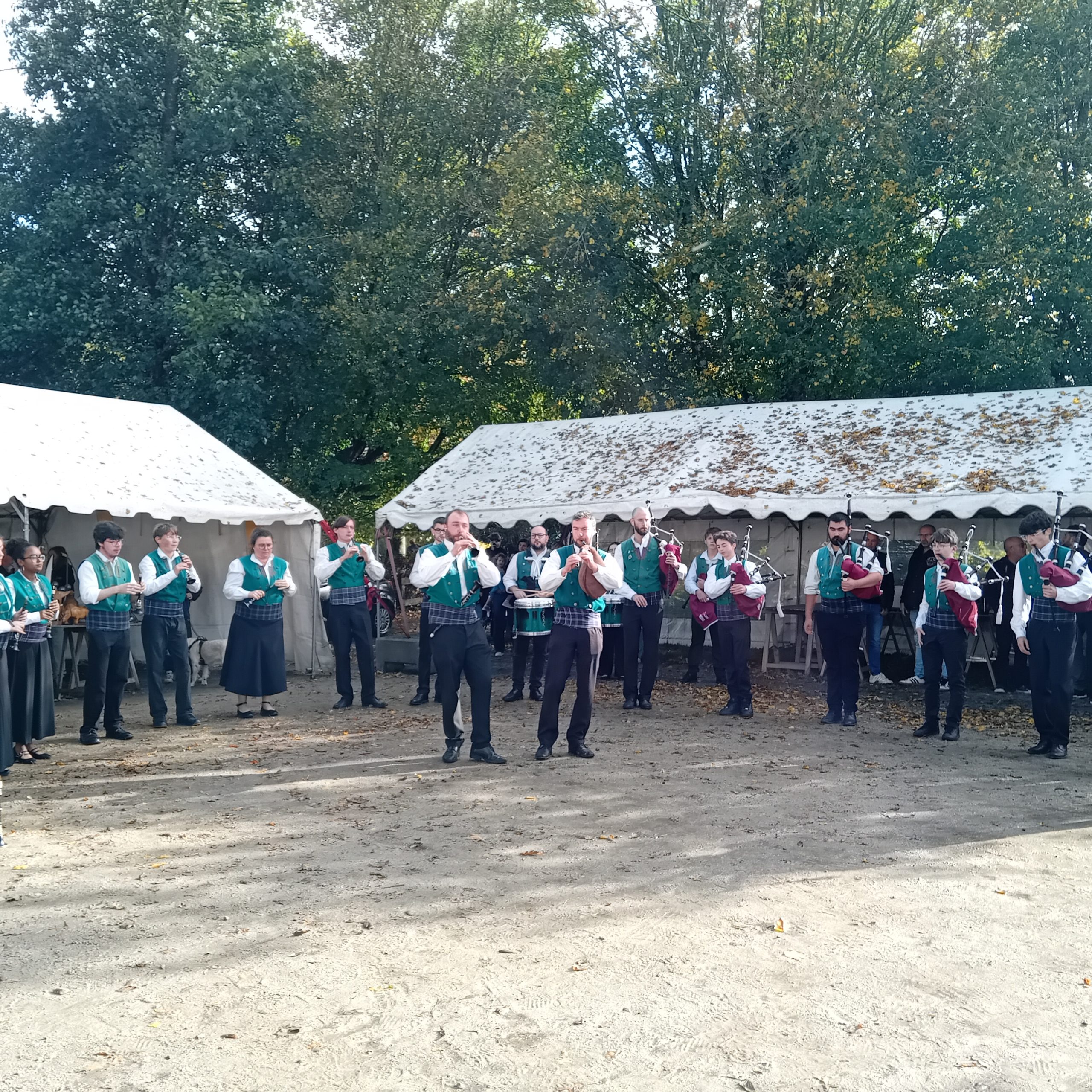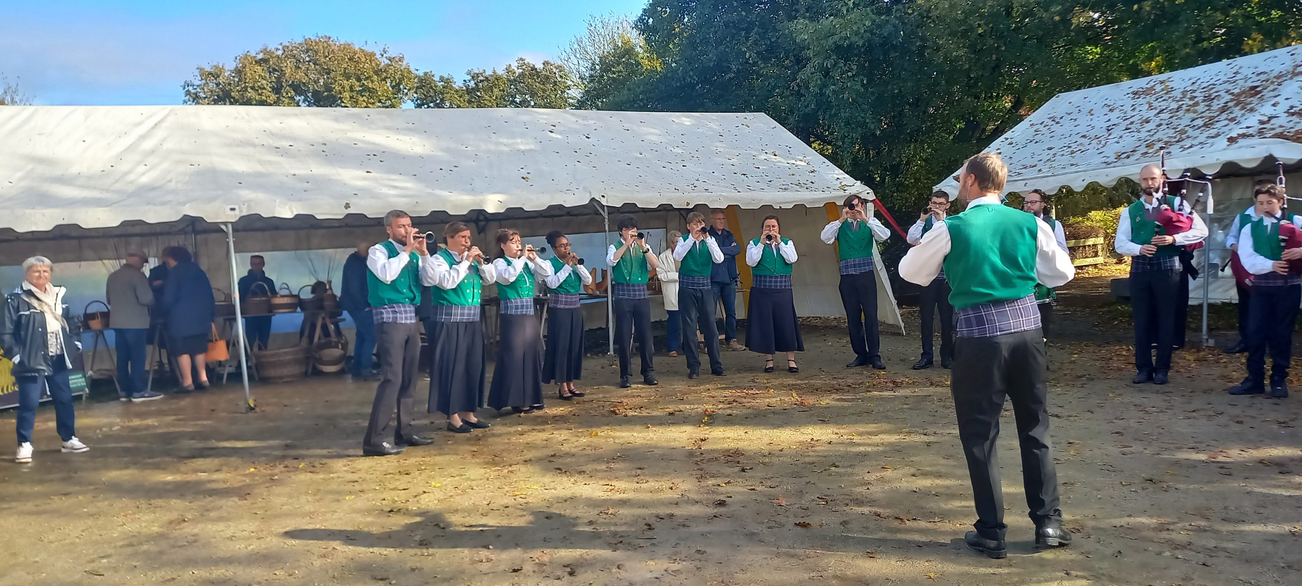 L’après-midi s’est poursuivie dans une ambiance joyeuse. Le Bagad de Plougastel a accompagné les visiteurs sur le site, tandis que la calèche promenait petits et grands. Un arrêt gourmand s’imposait autour du pain et de la brioche au bon beurre de baratte, accompagnés d’un verre de jus de pomme local.